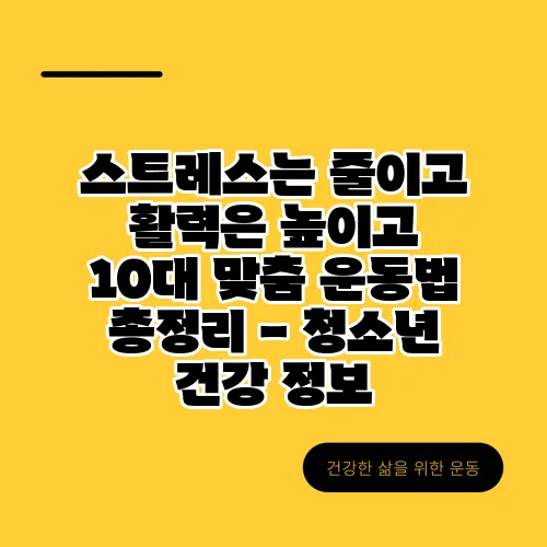 스트레스는 줄이고 활력은 높이고 10대 맞춤 운동법 총정리 - 청소년 건강 정보 2025년 06월 28일 by 건강한 삶을 위한 운동 방법의 모든것 목차 ▼ Home 카테고리 없음 스트레스는 줄이고 활력은 높이고 10대 맞춤 운동법 총정리 - 청소년 건강 정보 스트레스는 줄이고 활력은 높이고 10대 맞춤 운동법 총정리 - 청소년 건강 정보메인 콘텐츠 생성 실패같이보면 좋은 글! 👉학업 스트레스 타파 10대 👉우리 아이 키 안 큰다고 1 👉자세 교정 필수 10대 거북 공유하기 게시글 관리 건강한 삶을 위한 운동 방법의 모든것 최근댓글 최근글 인기글 분류 전체보기